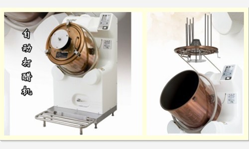 打醋機(jī)用于蒸熟的米飯與醋攪拌。這種壽司機(jī)比之人工攪拌更為方便快捷,攪拌也更為均勻,而且,自帶有冷卻功能,不必像手工拌醋一樣,要慢慢的等待米飯溫度下降,蒸熟的米飯即可直接倒進(jìn)打醋機(jī)中,節(jié)省大量的時(shí)間。而且,用打醋機(jī)拌醋,能有效避免手工拌醋會(huì)使米飯受損變形的可能。