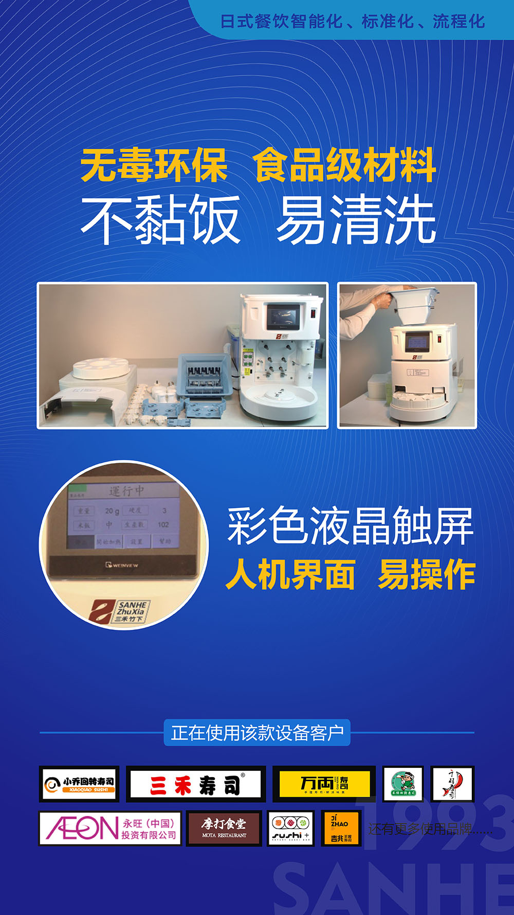 SW-P200全自動(dòng)沖壓式飯團(tuán)機(jī)是一款具有自動(dòng)打松、送飯、成型飯團(tuán)功能的高智能飯團(tuán)機(jī),制作速度快,操作簡(jiǎn)單。制作出來(lái)的飯團(tuán)美觀(guān)美味,無(wú)飯粒壓碎現(xiàn)象,可媲美大師級(jí)的壽司師傅。